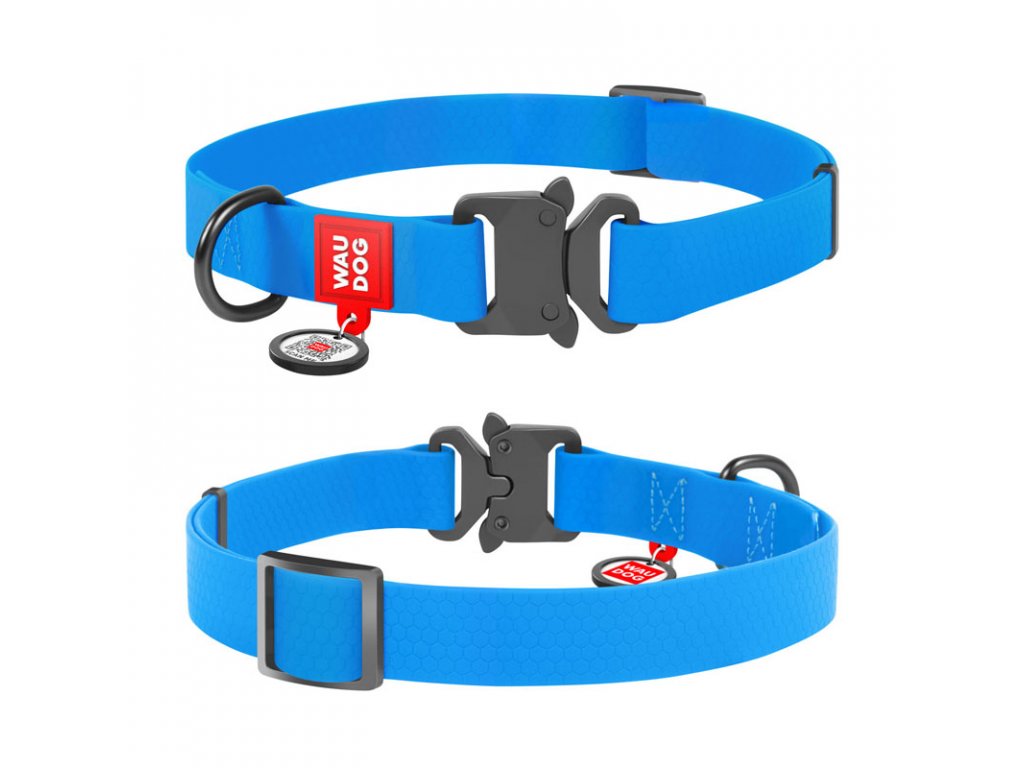 Vode odolný obojok WAU DOG modrý s QR kódom