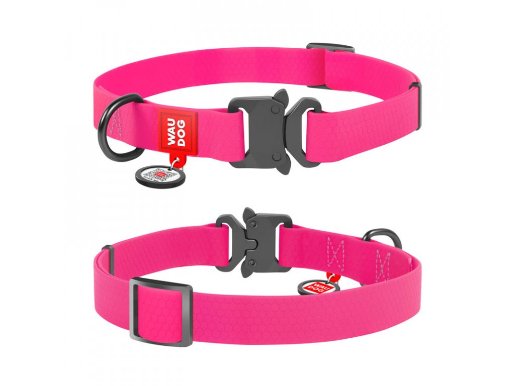 Vode odolný obojok WAU DOG ružový s QR kódom