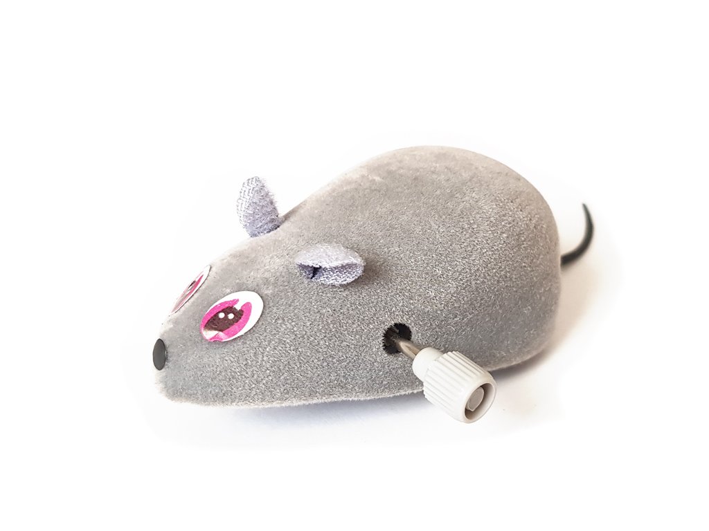 Veľmi populárna hračka pre mačičky. Myška s plyšovým povrchom sa natočí kľúčikom a následne sa sama pohybuje rôznymi smermi. Keďže chytanie drobných zvierat je obľúbená mačacia činnosť, táto pohyblivá myška sa teší veľkej popularite v mačacom svete.