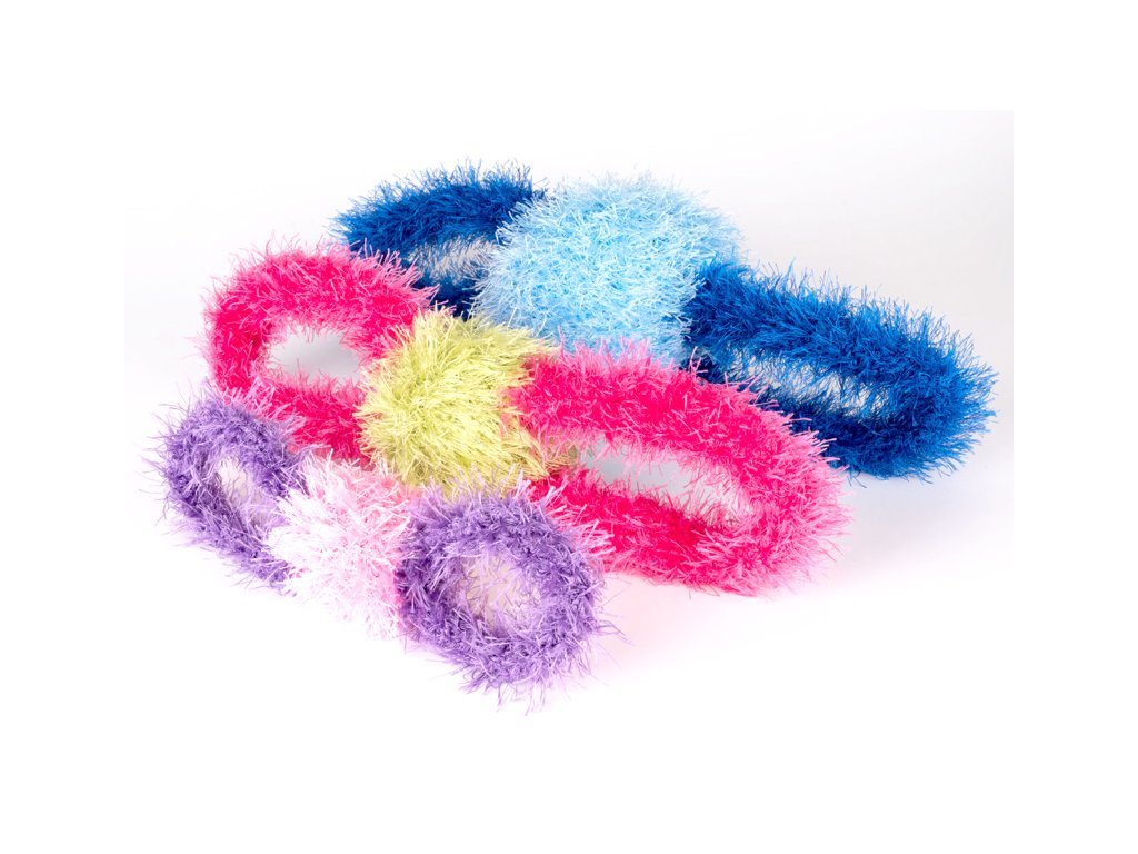 Tug-A-Roo, ako už názov napovedá, je ideálnou voľbou pre tých psov, ktorí sa radi ťahajú a hrajú sa! Stredná časť pozostáva zo špecializovanej pískacej guličky potiahnutého ručne háčkovanej funky kožušinovou priadzou pre zvýšenú mäkkosť a odolnosť. Táto priadza tiež pomáha pri starostlivosti o zuby, pričom na zuboch vášho psa počas hry pôsobí ako mäkká zubná kefka. Rukoväte tvoria slučku na držanie, ideálne keď sa používa na preťahovanie lanom alebo hádže!