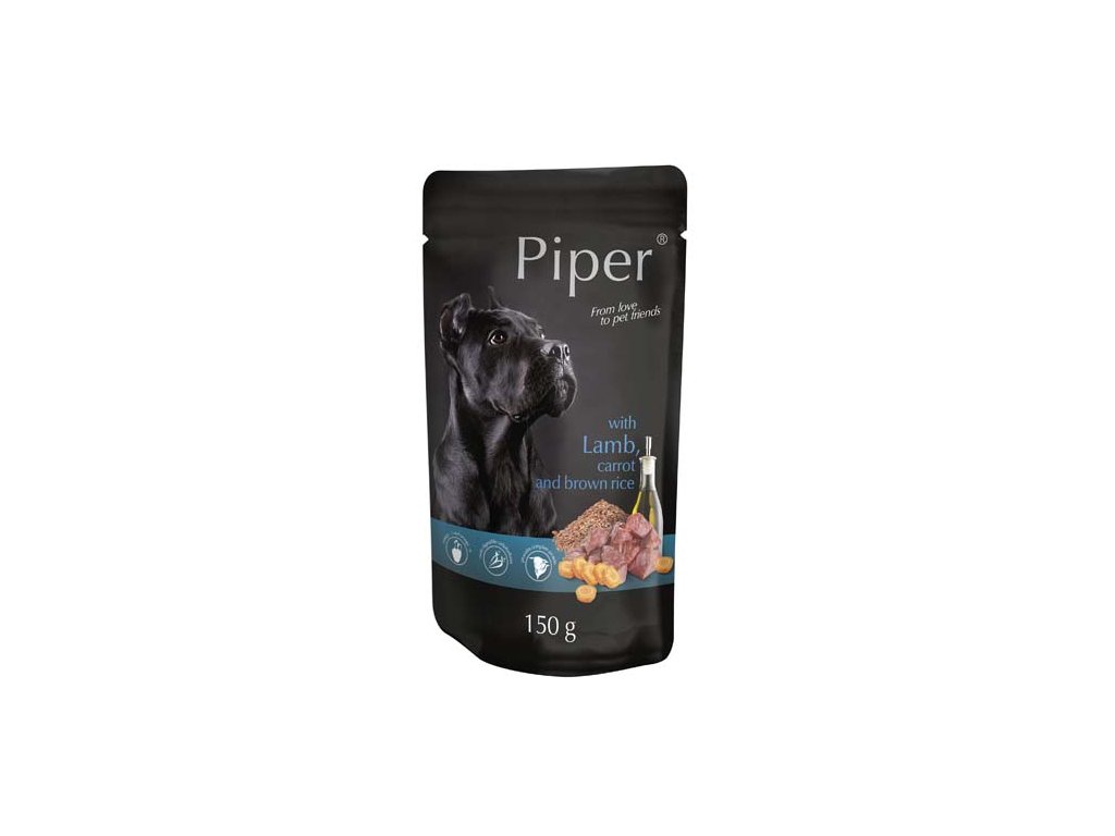 Plnohnodnotné krmivo Piper je určené pre dospelých psov všetkých plemien. Kapsičky pre psov PIPER Lamb obsahujú jahňacie mäso, ktoré vyhovuje aj citlivejším psom. Ďalej obsahuje hnedú ryžu, ktorá je kvalitným zdrojom sacharidov potrebných k regulácii metabolických procesov bielkovín a mastných kyselín a tiež vitamínov zo skupiny B. Hnedá ryža je aj zdrojom vlákniny. Kombinácia tejto ryže s mrkvou zlepšujú tráviacu funkciu. Naviac je do zloženia pridaný ľanový olej, ktorý je prírodným zdrojom esenciálnych nenasýtených mastných kyselín, prispieva ku skvalitneniu srsti a pozitívne ovplyvňuje nervový systém.