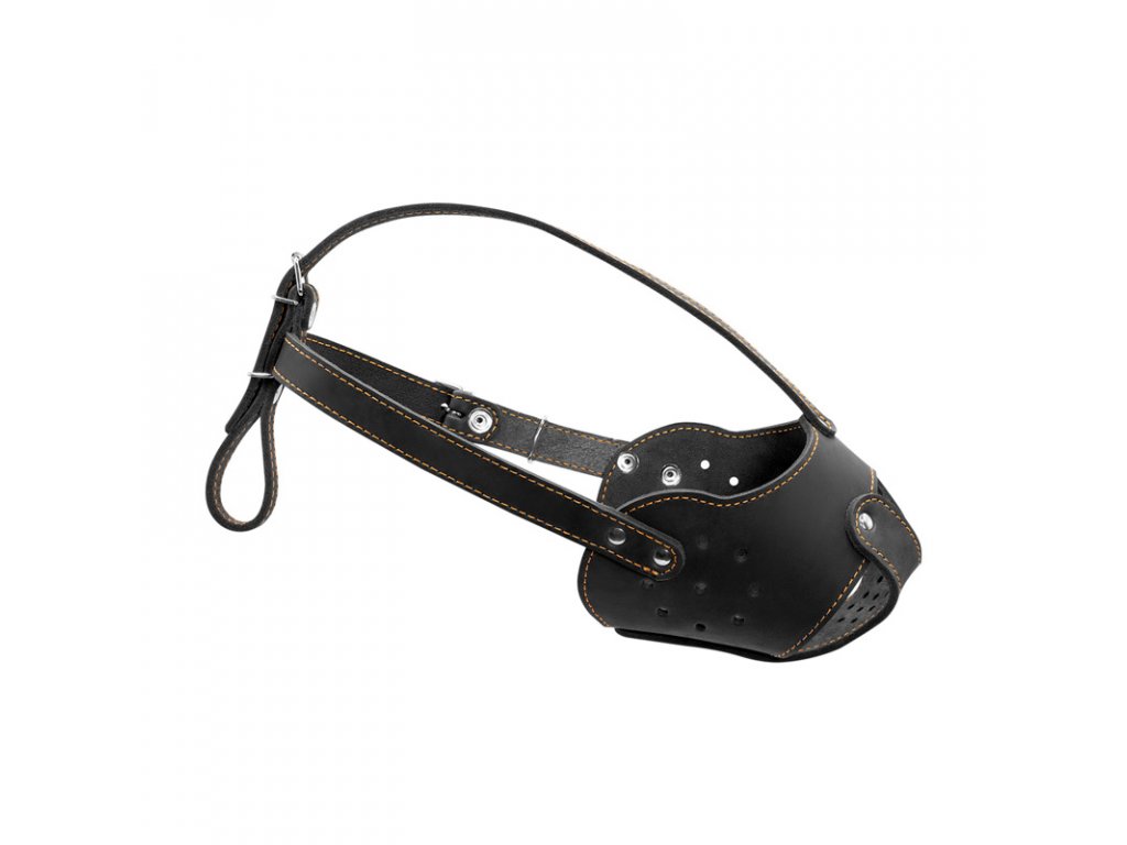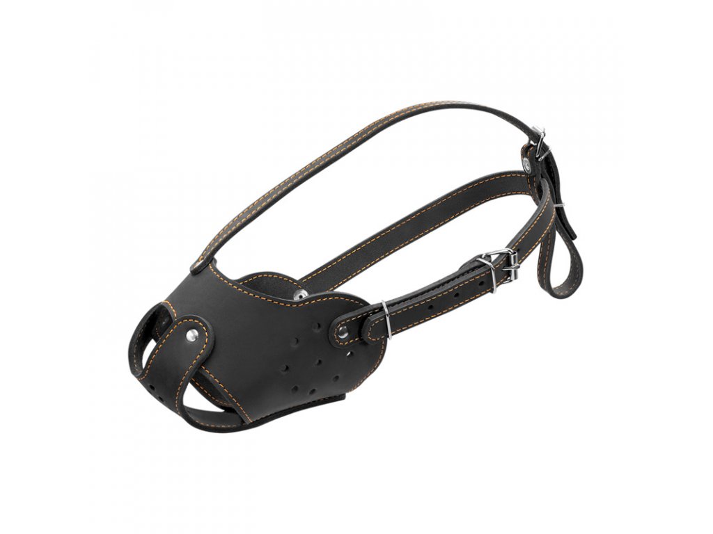 Nastaviteľný náhubok pre psa čiernej farby. Náhubok je ručne vyrobený z hovädzej kože, je veľmi kvalitný, štýlový a pevný. Kožený náhubok je vhodný pre plemeno bullteriér. Náhubok má nastaviteľné očko ktorým sa pripevní o obojok aby ho pes nestiahol z hlavy.