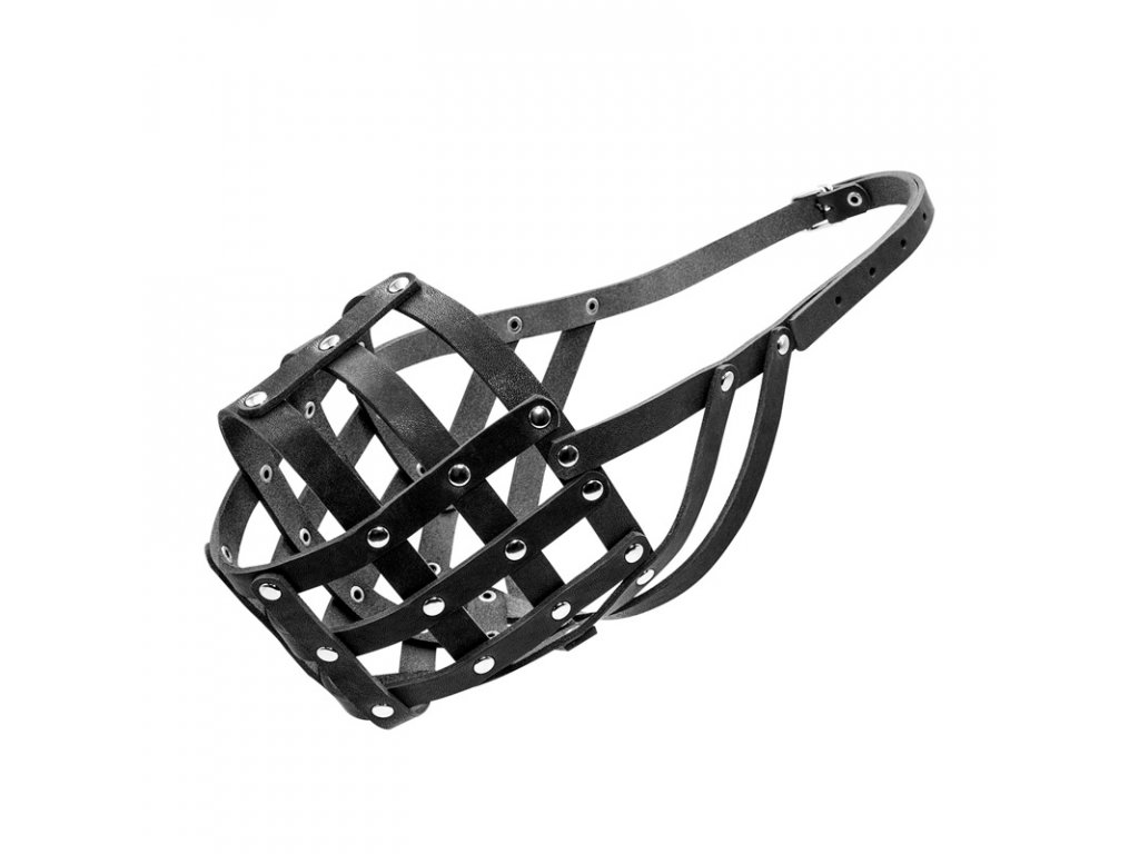Nastaviteľný náhubok pre psa čiernej farby. Náhubok je ručne vyrobený z hovädzej kože, je veľmi kvalitný, štýlový a pevný. Kožený náhubok je vhodný pre veľké plemená ako mastif, kaukazský ovčiak, moskovský strážny pes, novofundlanský pes a pod.
