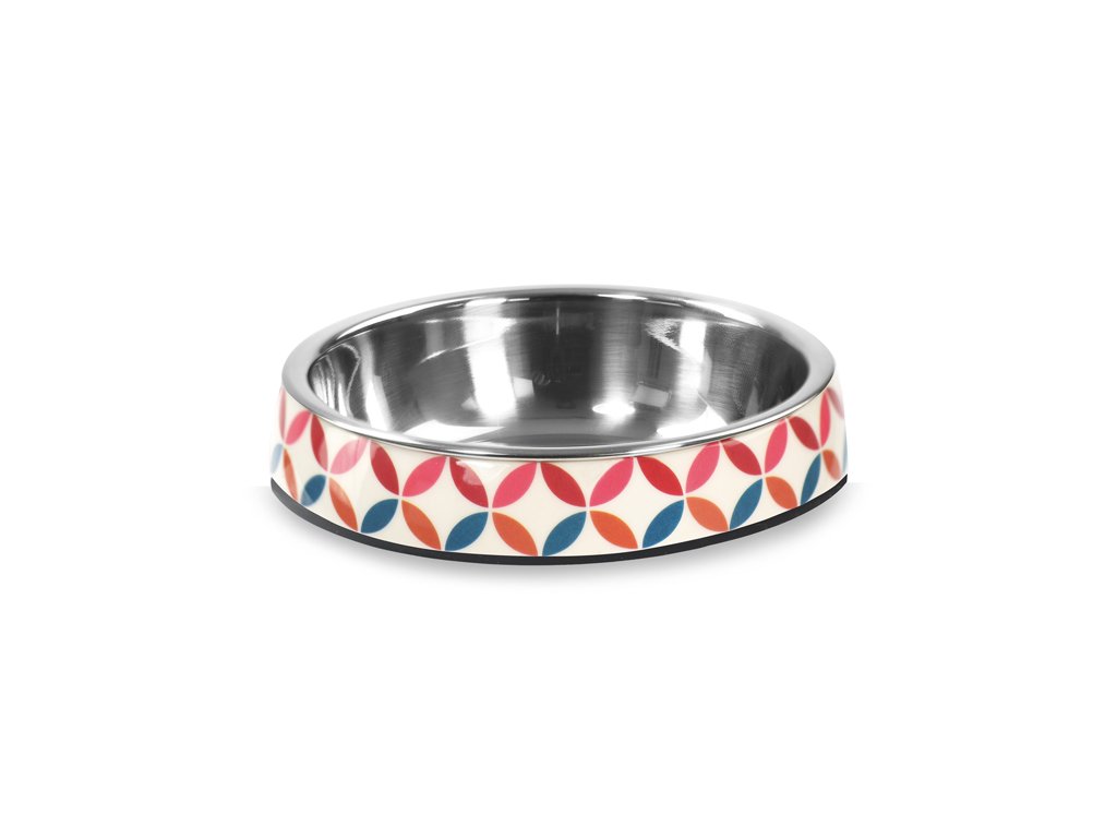 Elegantná praktická miska pre mačku so vzorom Origami. Miska sa skladá z 2 častí. Jedna časť je vyrobená z tvrdeného zdravotne nezávadného plastu - melamínu, druhá je nerezová, vyberateľná.