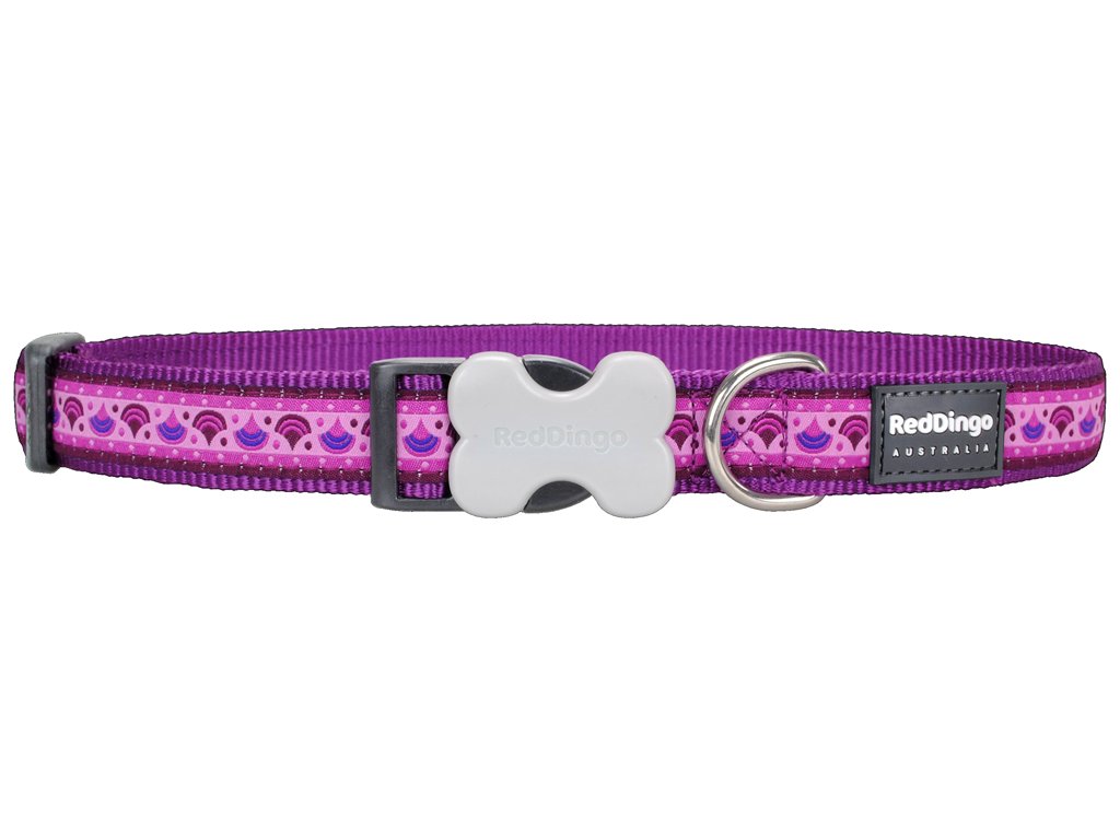Nylonový obojok pre psa fialovej farby so vzorom Carnival od austrálskej značky Red dingo. Tieto obojky sú veľmi kvalitné, trvácne, pevné a vyzerajú na psíkovi výborne. Obojky sú vyrobené z veľmi kvalitného a pevného nylonového materiálu. Jedinečná spona v tvare kosti Bucklebone je jednou z najpevnejších spôn na trhu.