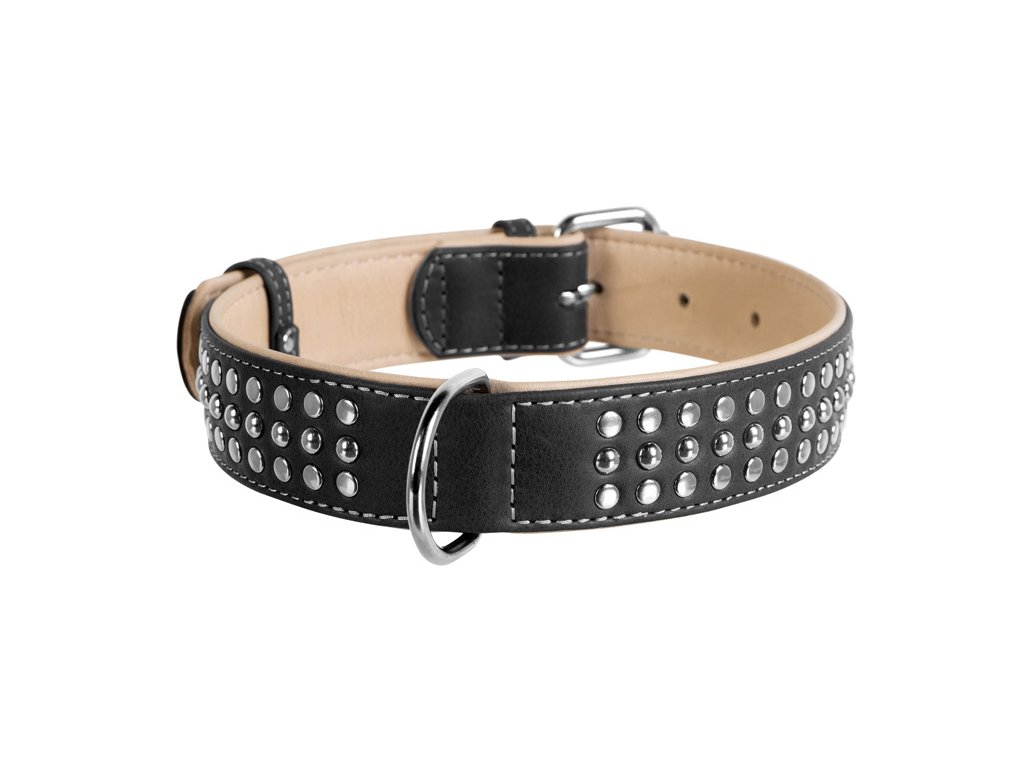Ručne šitý vysoko kvalitný ručne vyrábaný mäkký polštrovaný kožený obojok s lesklým zapínaním, pevným krúžkom a kovovou dekoráciou. Prírodná dvojvrstvová hebká a pritom odolná koža nielenže pekne vyzerá, ale tiež poskytuje dlhotrvajúce použitie. Tieto obojky sú súčasťou vynovenej úspešnej Soft kolekcie a sú vhodné pre psov s citlivou kožou alebo alergické na nylon. Tento atraktívny obojok je vyrábaný v rôznych veľkostiach od šteniatok až po veľké plemená. Tento kožený je výborne premyslený v každom detaile.