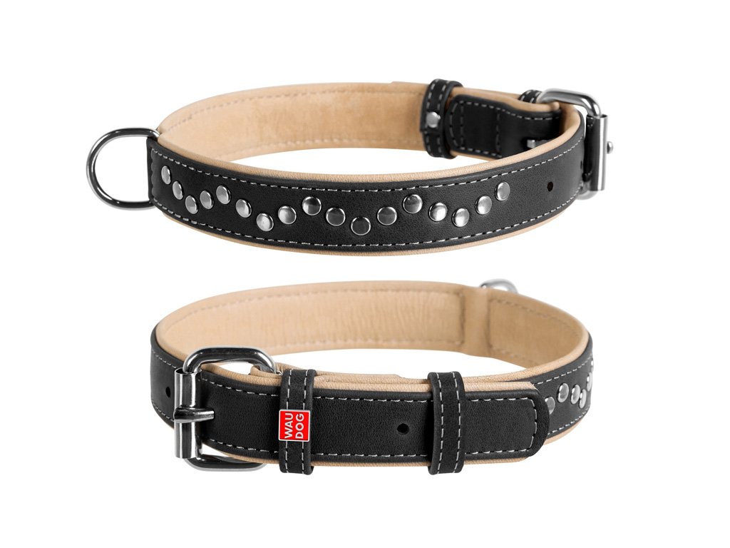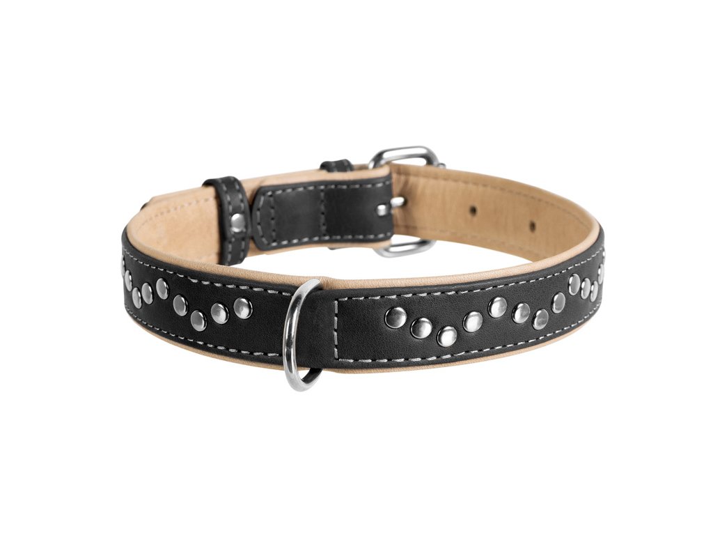 Ručne šitý vysoko kvalitný ručne vyrábaný mäkký polštrovaný kožený obojok s lesklým zapínaním, pevným krúžkom a kovovou dekoráciou. Prírodná dvojvrstvová hebká a pritom odolná koža nielenže pekne vyzerá, ale tiež poskytuje dlhotrvajúce použitie. Tieto obojky sú súčasťou vynovenej osvedčenej Soft kolekcie a sú vhodné pre psov s citlivou kožou alebo alergické na nylon. Tento atraktívny obojok je vyrábaný v rôznych veľkostiach od šteniatok až po veľké plemená. Tento kožený je výborne premyslený v každom detaile.