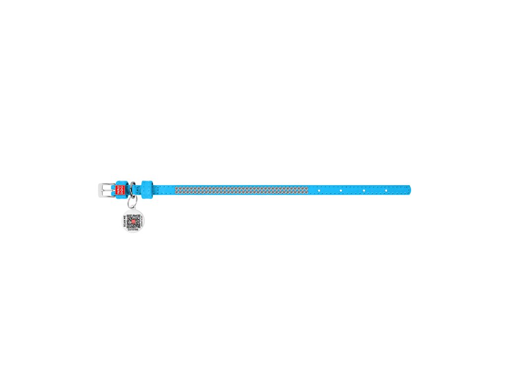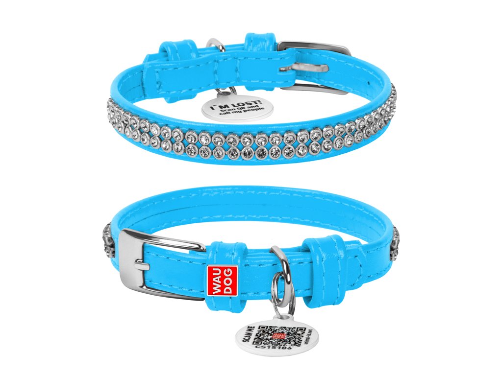 Kožený obojok s kryštálmi modrý