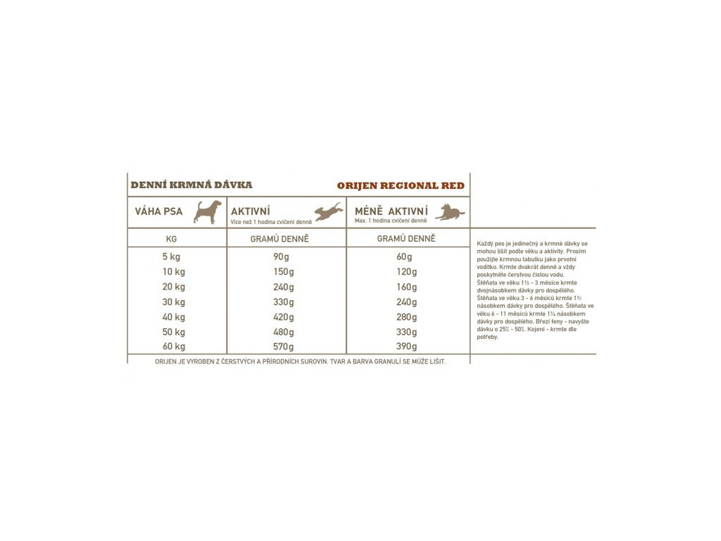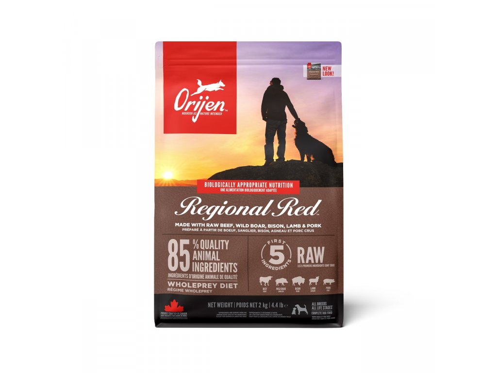Kompletné krmivo pre psov všetkých plemien. Granule Orijen Regional red sú plné proteínov pochádzajúcich z hovädzieho plemena Angus, divokého kanca, bizóna, jahňaťa a tradičného kanadského bravčového. Všetky suroviny sú dodávané miestnymi dodávateľmi vždy čerstvé v bohatom výživnom podiele - celý kus. Orijen je pripravovaný vo víťazne oceňovaných kuchyniach NorthStar®. Krmivo Orijen zaručí, že váš milovaný pes bude zdravý, spokojný a silný. Prečítajte si zloženie a myslíme si, že budete súhlasiť.