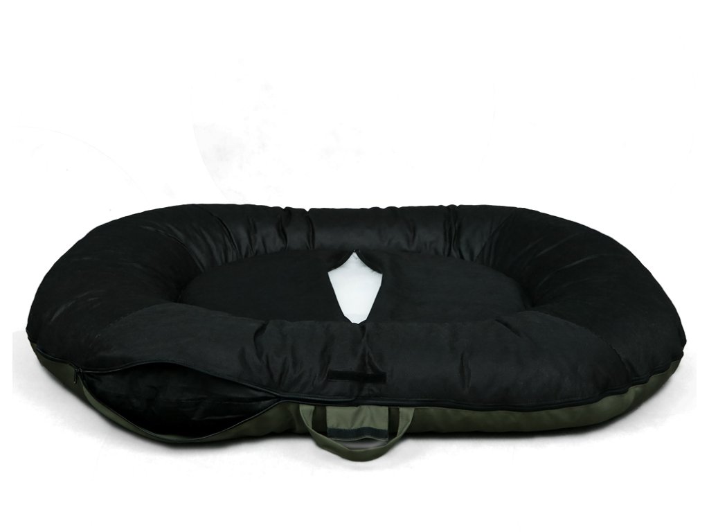Pelech pre psa Pontoon Comfort tmavo zelenej farby vyrobený z moderného, odolného a trvácneho materiálu CORDURA® a netkaného polypropylénu. Pelech je prateľný v 30°C, má zvýšenú odolnosťou proti poškriabaniu, proti vlhkosti, proti deformovaniu a proti zašpineniu. Má ľahko snímateľný odzipsovateľný poťah, skrytý zips a praktickú rúčku na prenášanie. Veľkosť "L" (65 x 90 x 15cm)