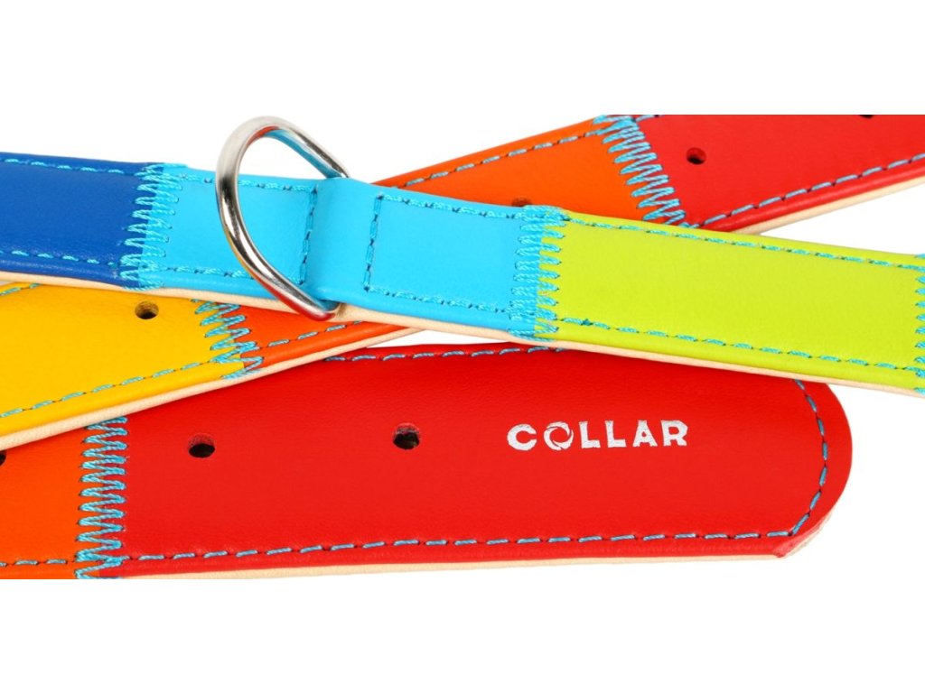 Plochý kožený obojok dúha