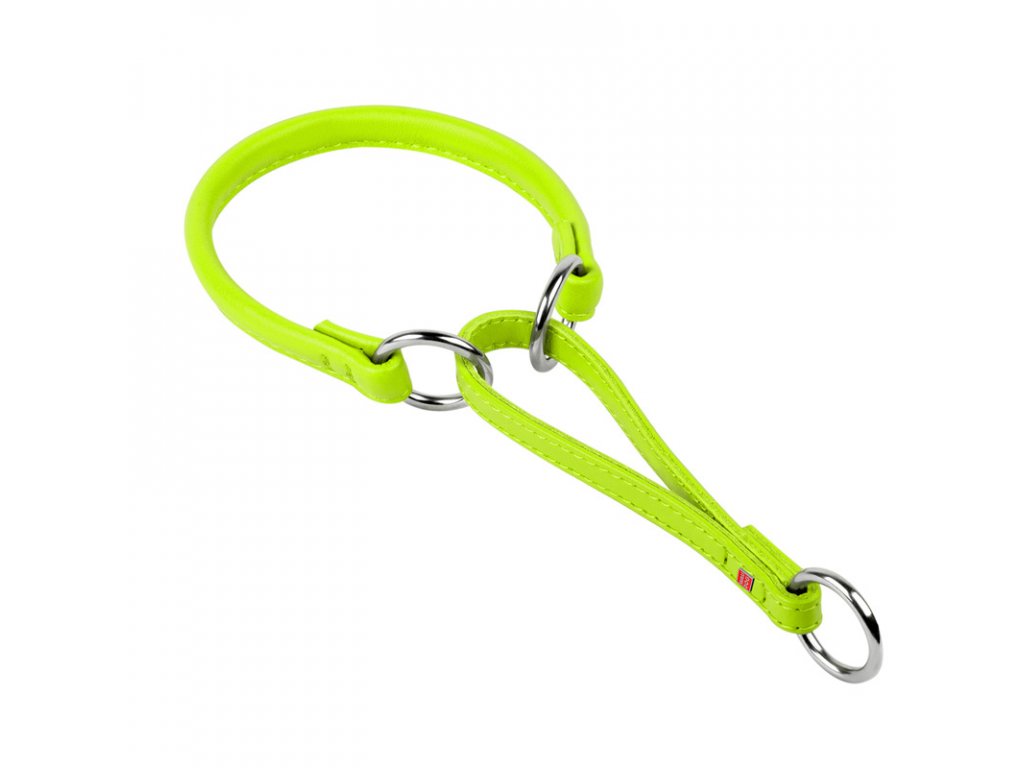 Ručne šitý okrúhly pološkrtiaci obojok zelenej farby z prírodnej hovädzej kože má možnosť presne korigovať silu škrtenia správnou veľkosťou obojku. Je to najlepší spôsob, ako mať kontrolu nad svojím miláčikom. Tento ľahký mäkký obojok je vyrobený zo špeciálne upravenej hodvábne hladkej, ale odolnej hovädzej kože, ktorá sa hodí pre psa s citlivou kožou. Okrúhle obojky sú vhodné najmä pre psov s dlhými hustými chlpmi, pretože guľatý tvar predchádza zamotaniu a zničeniu srsti okolo krku vášho domáceho maznáčika. Tiež vyzerajú skvelo na psoch s krátkou srsťou. Tento zelený okrúhly obojok máme v 10 veľkostiach a bude vyhovovať každému psovi od miniatúrnych až veľké plemená.