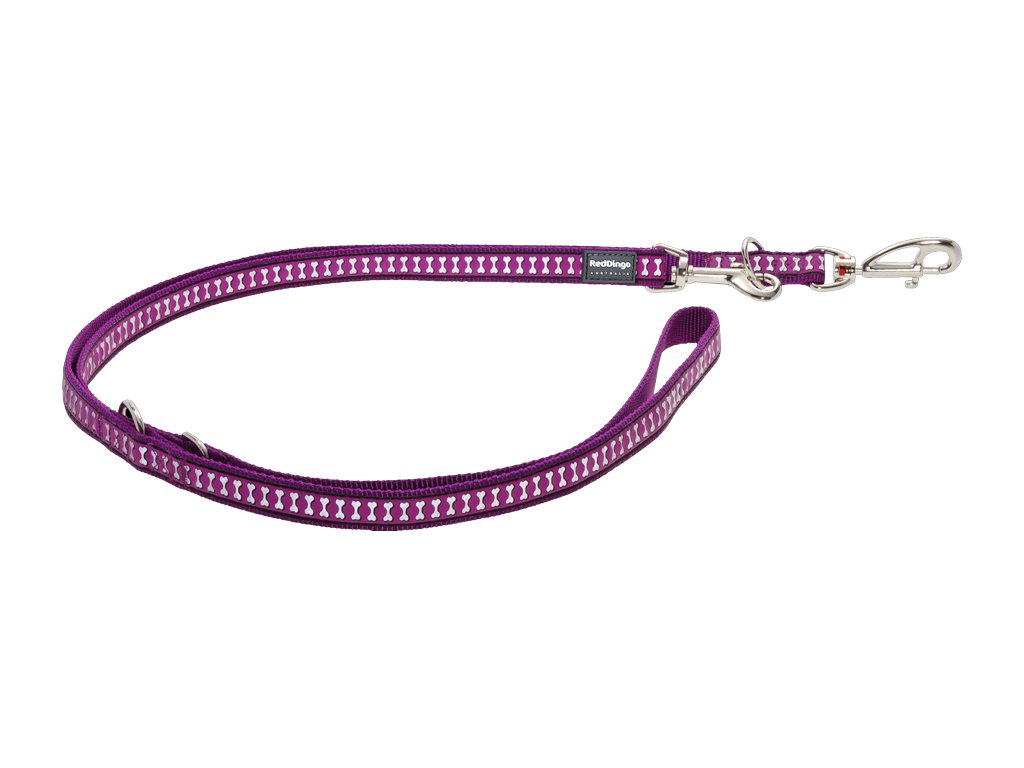 Elegantné a bezpečné reflexné prepínacie vodítko pre psa Red Dingo s kostičkami. Prepínacia vôdzka má dĺžku 2,0 m a je ukončená kvalitnými karabínami primerane silnými k hrúbke vodítka s jedinečným dizajnom na oboch koncoch. Vďaka trom pevným zváraným nerezovým D-krúžkom je ľahko nastaviteľná na rôzne použitie. Multifunkčné vodítko pre psa umožňuje použiť ako vodítko na chôdzu pri nohe, vodítko pre 2 psov, rovnako ako „hands free“ vodítko. Okrem toho môže byť použité ako kratšie alebo dlhšie vodítko na fixovanie k predmetu psa pri odložení. Je skvelé pre "hands free" chôdzu v meste a tiež sa ľahko nastaví na správnej šírku chodníka (možnosť nastaviť až na 3 rôzne dĺžky).