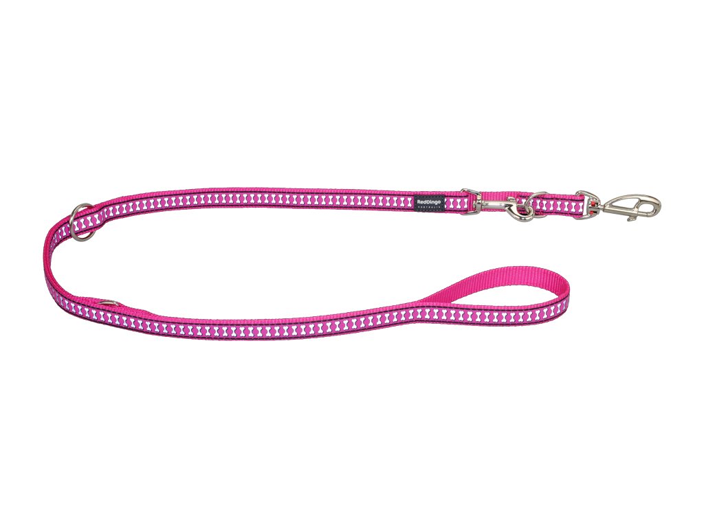 Elegantné a bezpečné reflexné prepínacie vodítko pre psa Red Dingo s kostičkami. Prepínacia vôdzka má dĺžku 2,0 m a je ukončená kvalitnými karabínami primerane silnými k hrúbke vodítka s jedinečným dizajnom na oboch koncoch. Vďaka trom pevným zváraným nerezovým D-krúžkom je ľahko nastaviteľná na rôzne použitie. Multifunkčné vodítko pre psa umožňuje použiť ako vodítko na chôdzu pri nohe, vodítko pre 2 psov, rovnako ako „hands free“ vodítko. Okrem toho môže byť použité ako kratšie alebo dlhšie vodítko na fixovanie k predmetu psa pri odložení. Je skvelé pre "hands free" chôdzu v meste a tiež sa ľahko nastaví na správnej šírku chodníka (možnosť nastaviť až na 3 rôzne dĺžky).