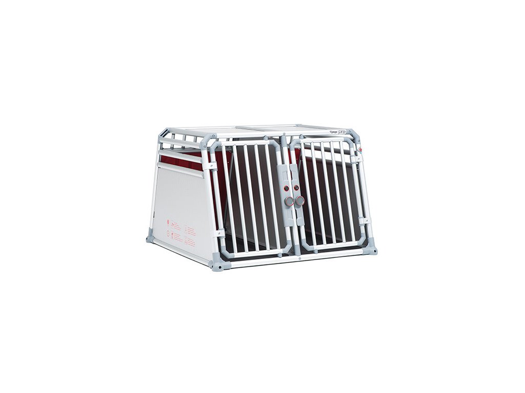 - stabilný hliníkový rám a pevné spoje: rohové spojky sú vystužené sklenenými vláknami a pevne priskrutkované k špeciálne tvarovaným tyčiam. Toto robí prepravku pre psa mimoriadne stabilnú.