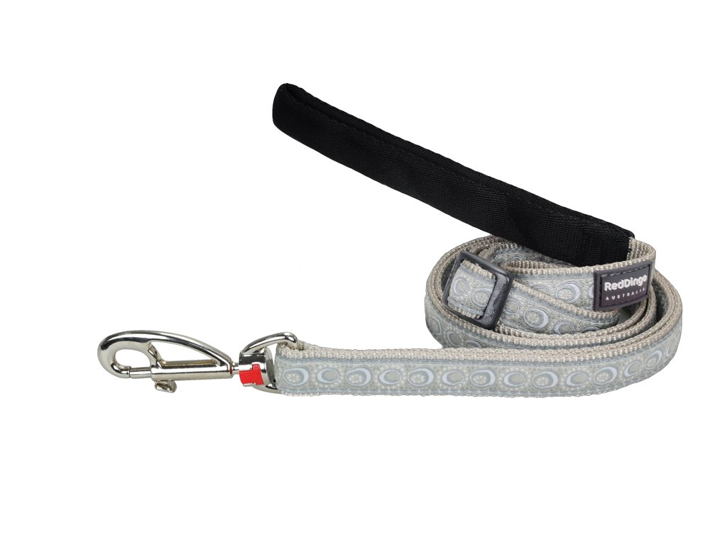 Nylonové vodítko pre psa sivej farby so vzorom Cosmos od austrálskej značky RED DINGO. Tieto vodítka sú veľmi kvalitné, trvácne, pevné a vyzerajú výborne. Vodidlá sú vyrobené z veľmi kvalitného a pevného nylonového materiálu. Dĺžka vodítka sa dá meniť pomocou praktickej spony, pričom maximálna dĺžka pri klasicklom vodidle je 180cm. Rukoväť vodidlo je polstrovaná, čím zvyšuje komfort pre majiteľa pri držaní a vodení psa. Všetky vôdzky sú ukončené pevnou karabínou.