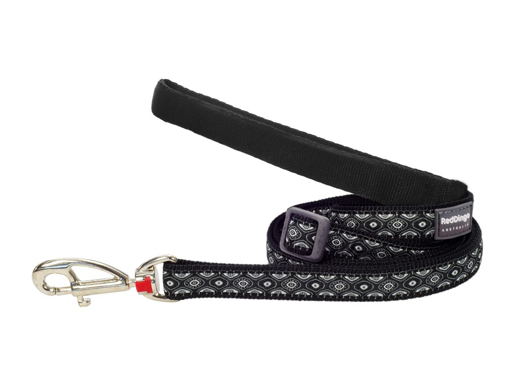 Nylonové vodítko pre psa čierne hadie oči - SNAKE EYES od austrálskej značky RED DINGO. Tieto vodítka sú veľmi kvalitné, trvácne, pevné a vyzerajú výborne. Vodidlá sú vyrobené z veľmi kvalitného a pevného nylonového materiálu. Dĺžka vodítka sa dá meniť pomocou praktickej spony, pričom maximálna dĺžka pri klasicklom vodidle je 180cm. Rukoväť vodidlo je polstrovaná, čím zvyšuje komfort pre majiteľa pri držaní a vodení psa. Všetky vôdzky sú ukončené pevnou karabínou.
