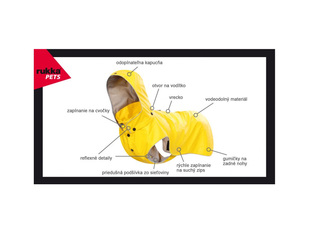 Užite si jednoduchosť: Cvočky vpredu a zapínanie na bruchu na suchý zips uľahčujú obliekanie a vyzliekanie bundy. Bunda má odopínateľnú kapucňu, ktorá ochráni vášho psa vonku aj v tých najhorších daždivých a veterných dňoch. Tento žltý pršiplášť je možné prať v práčke a skutočne rýchlo schne. Zaberá málo miesta, takže je ľahké zabaliť si ho so sebou. Zabudovaný otvor na vodítko umožňuje rýchle pripnutie vodítka na obojok. Dizajn otvoru umožňuje prechádzať sa so psom na vodítku aj v daždivom dni. Vo vrchnej časti pršiplášťa je tiež malé vrecko na kľúče alebo na odpad.