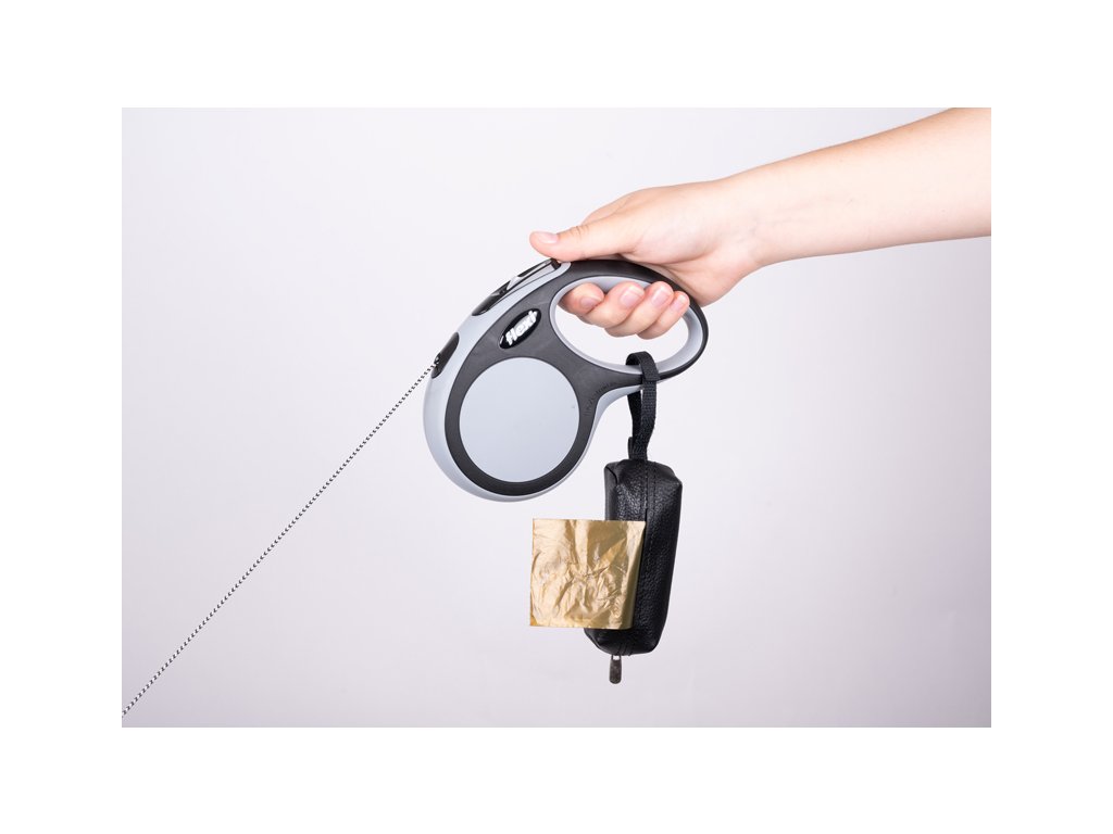 Praktický držiak na sáčky so suchým zipsom, ktorý sa pripája k vodítku. Tento elegantný dávkovač má veľkorysý otvor, ktorý v prípade potreby umožňuje jednoduchý a rýchly prístup k sáčkom.