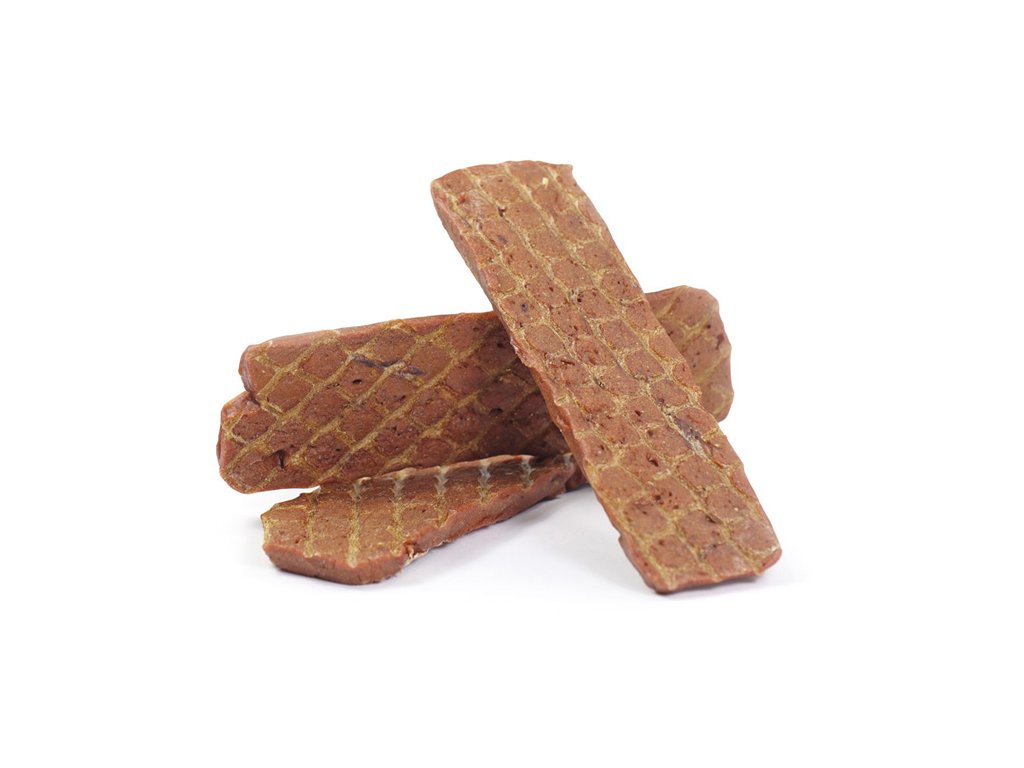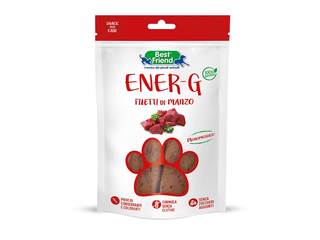 Pamlsky Ener-G obsahuje iba jeden živočíšny proteín, ktorý rešpektuje výživové návyky psa a znižuje riziko alergií, bez konzervantov, farbív, lepku alebo pridaných cukrov. Hovädzie filé je zdrojom vzácnych bielkovín, zinku a draslíka. Nízky obsah cholesterolu. 100% prírodný produkt.