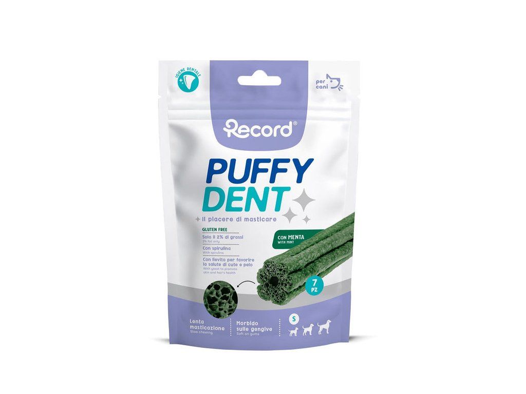 Ľahké a zdravé- Puffy Dent sú bezlepkové a obsahujú iba 2 % tuku, vďaka čomu sú vhodné pre psy všetkých veľkostí.