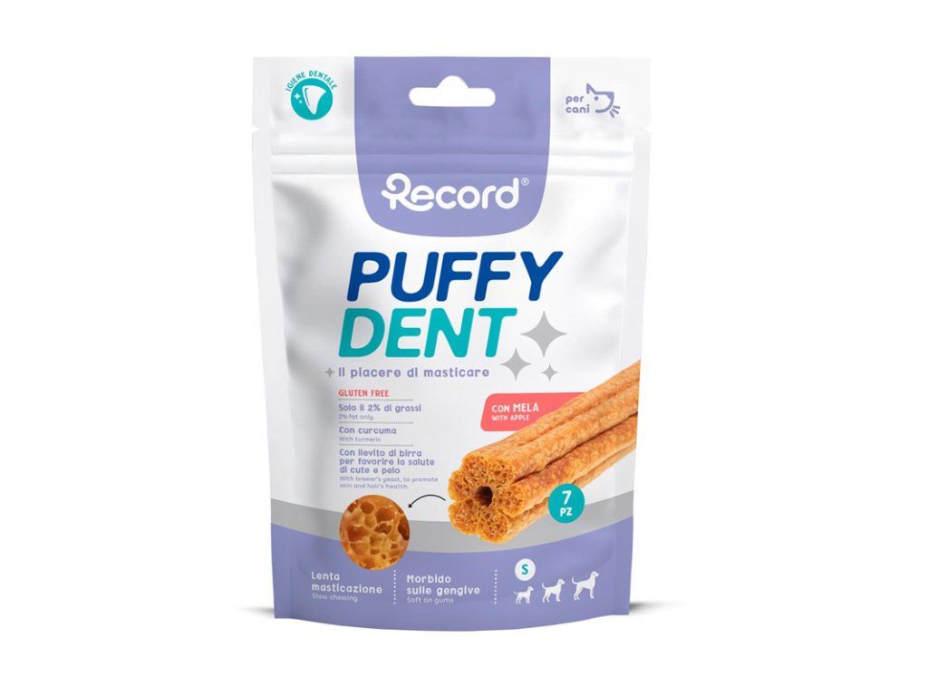 Ľahké a zdravé- Puffy Dent sú bezlepkové a obsahujú iba 2 % tuku, vďaka čomu sú vhodné pre psy všetkých veľkostí.