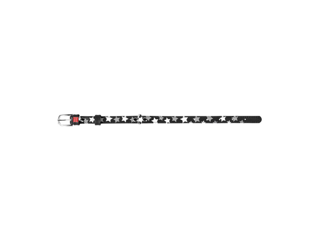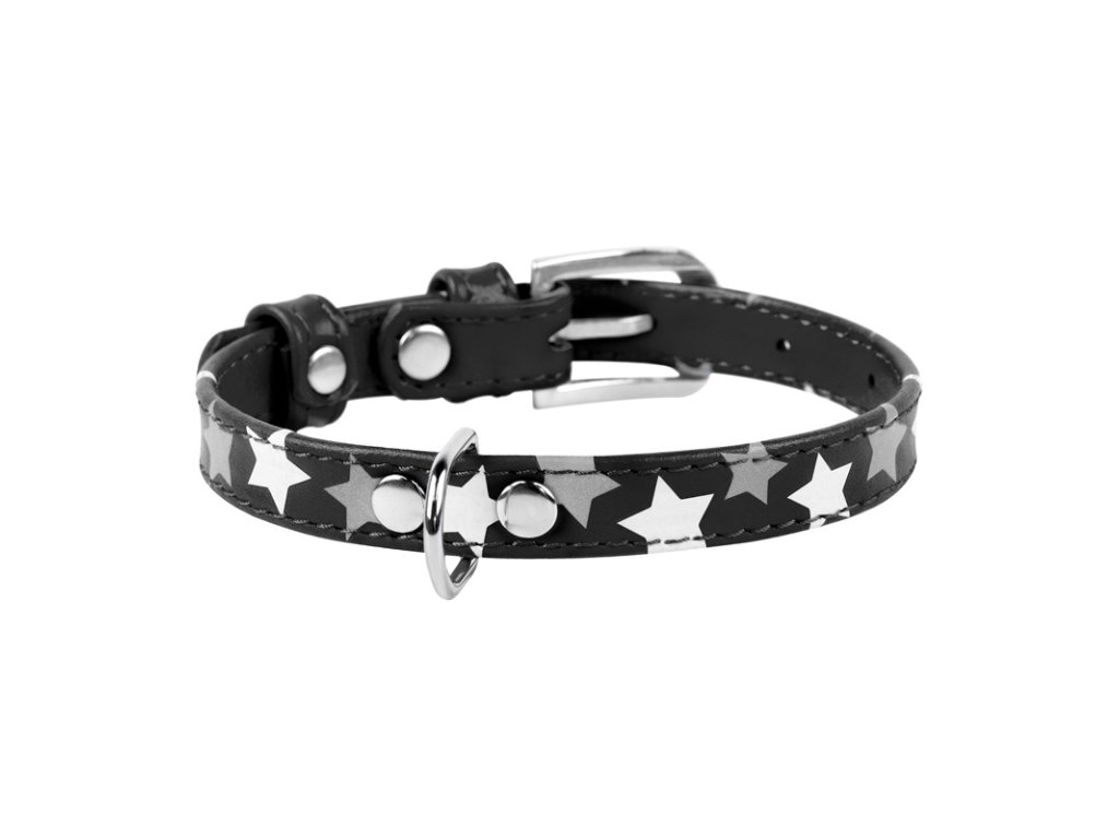 Plochý kožený obojok s hviezdičkami čierny svietiaci